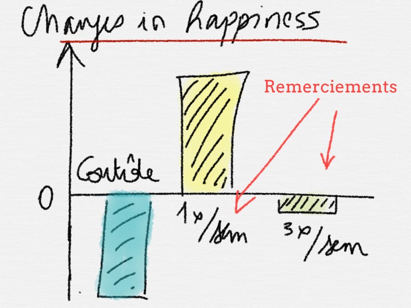 Personnellement, c’est un des exercices qui a le mieux marché avec moi. Je participais à une étude scientifique qui devais durer 15 jours et j’ai continué à dire merci tous les deux jours pendant 1 mois !